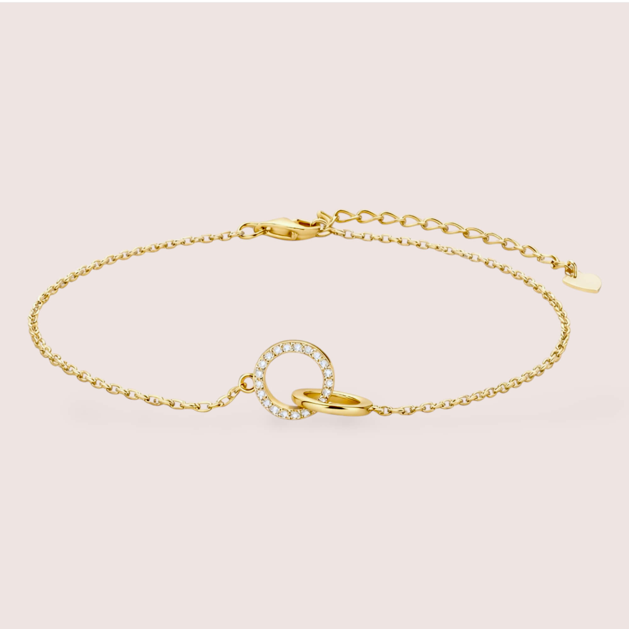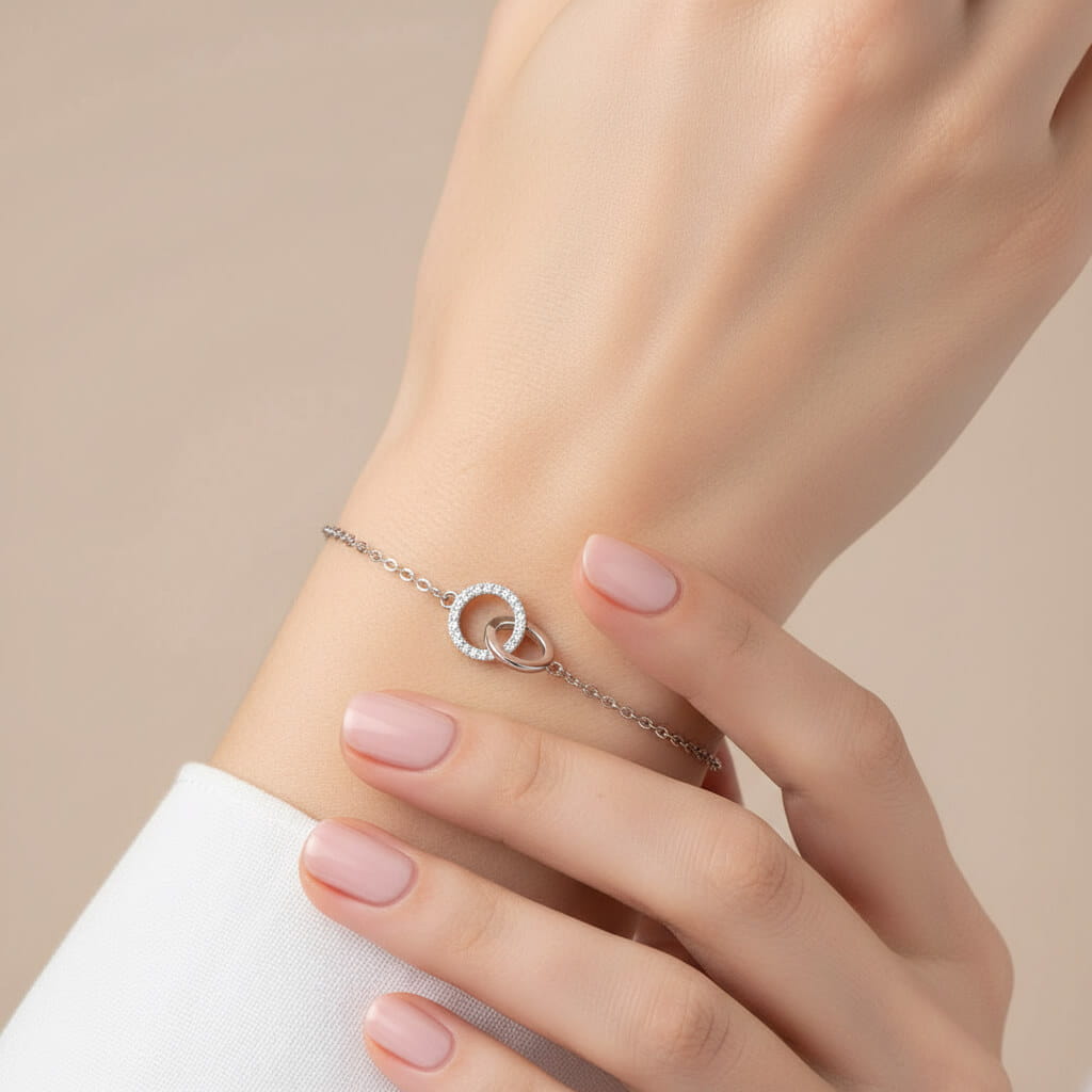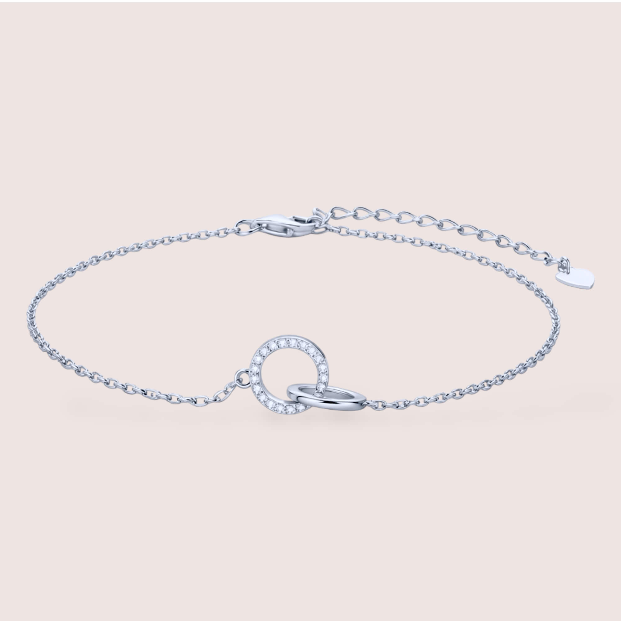 Delikatna bransoletka z moissanitami Orion o masie łącznej ok. 0,1 ct, wykonana z wysokiej jakości srebra 925, to elegancki i subtelny dodatek. Dwa splecione kółka, z których jedno ozdobione jest moissanitami o wielkości 1mm w brylantowym szlifie, tworzą nowoczesny i stylowy design. Idealna na co dzień, jak i na specjalne okazje, bransoletka Orion łączy minimalistyczną formę z luksusowym wykończeniem, dodając blasku każdej stylizacji.