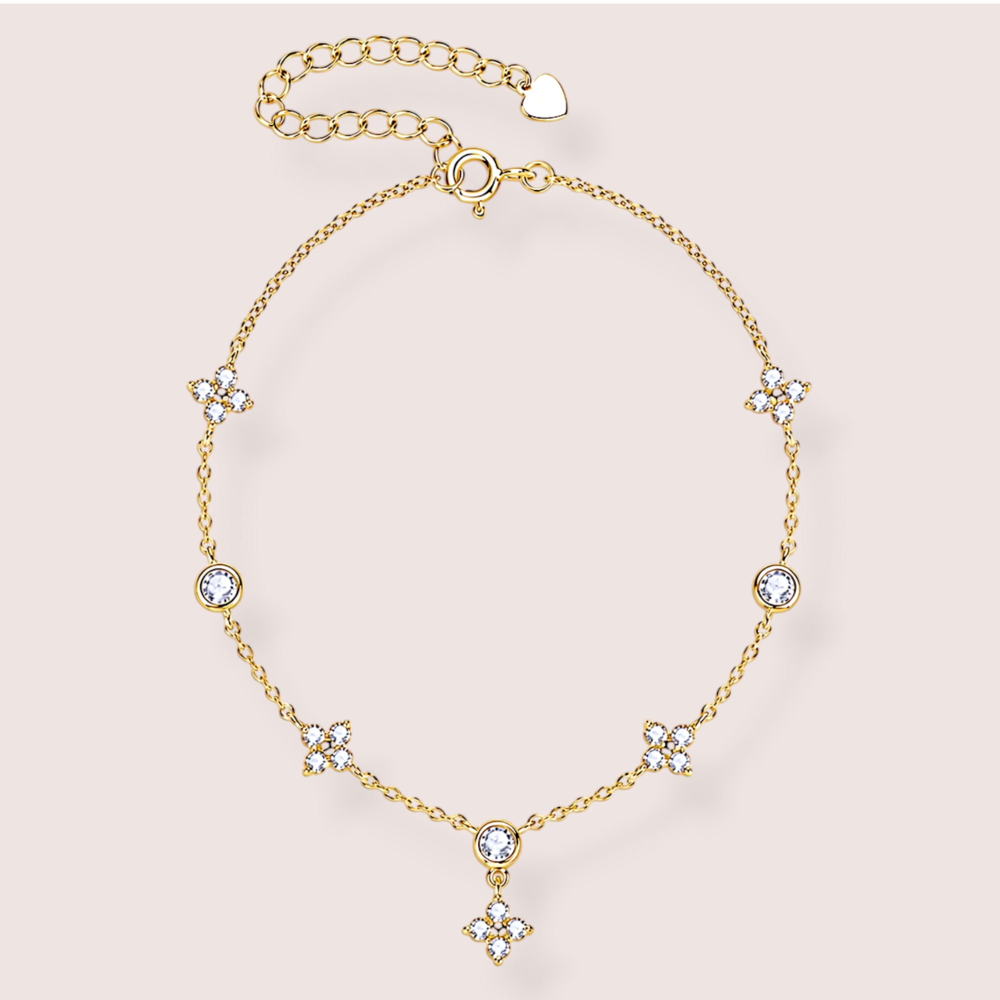 Subtelna bransoletka z moissanitami zachwyca lekką formą i delikatnymi motywami kwiatowymi. Lśniące kamienie pięknie odbijają światło, dodając elegancji i kobiecego uroku. Idealna na co dzień oraz na wyjątkowe okazje.