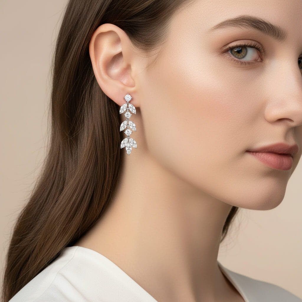 Kolczyki wiszące z moissanitami – Leaf srebro 925