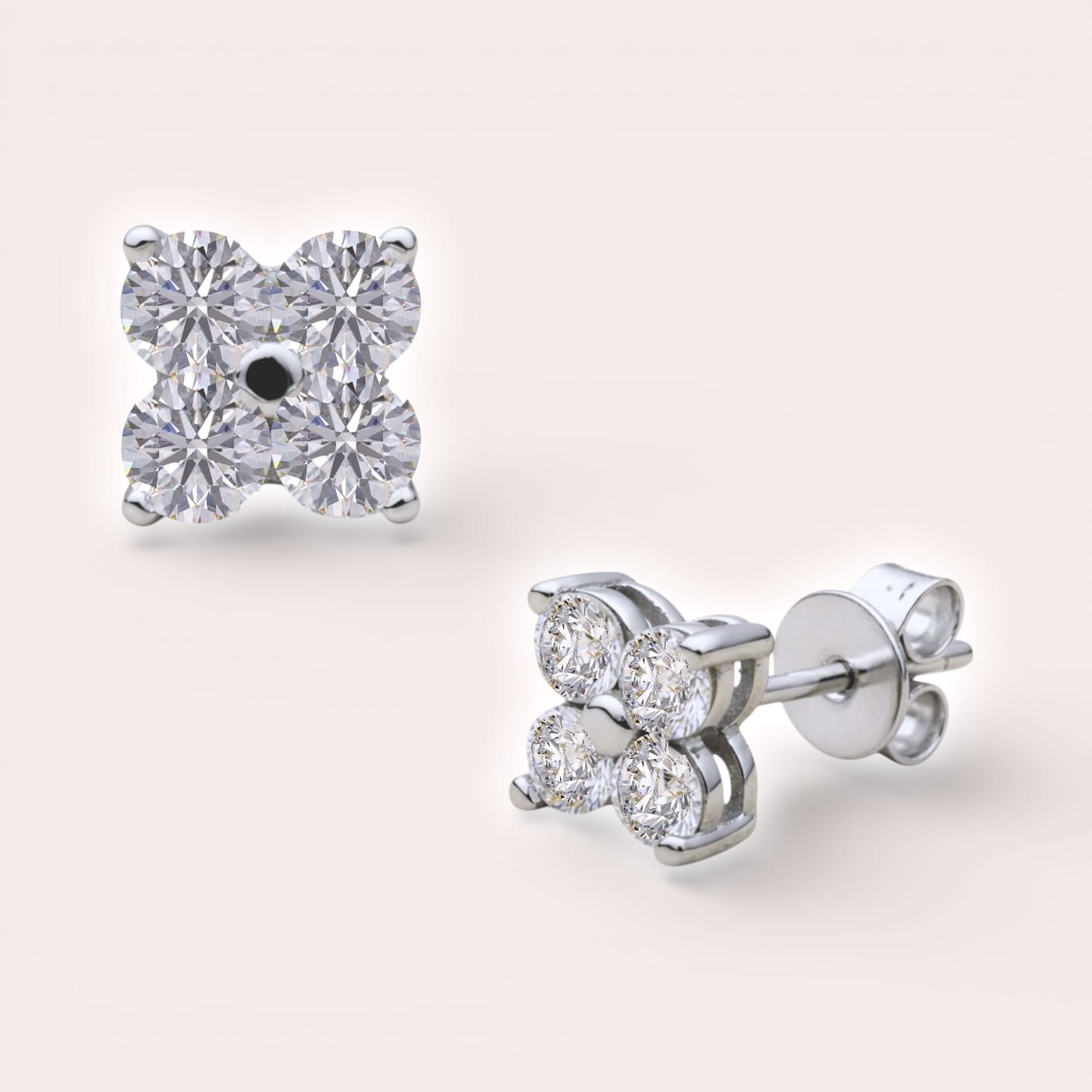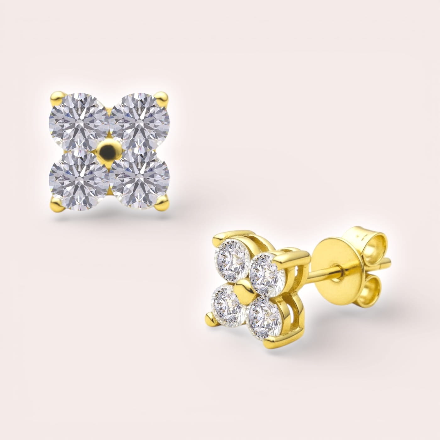 Stylowe kolczyki Clover, wykonane z najwyższej jakości srebra 925, ozdobione czterema moissanitami o brylantowym szlifie. Precyzyjnie osadzone kamienie tworzą efektowny wzór czterolistnej koniczyny, która symbolizuje szczęście. Zapięcie na sztyft zapewnia wygodę i bezpieczeństwo noszenia, a unikalny design kolczyków dodaje subtelnej elegancji każdej stylizacji. Idealne na każdą okazję, dla osób ceniących klasykę z nutą oryginalności.