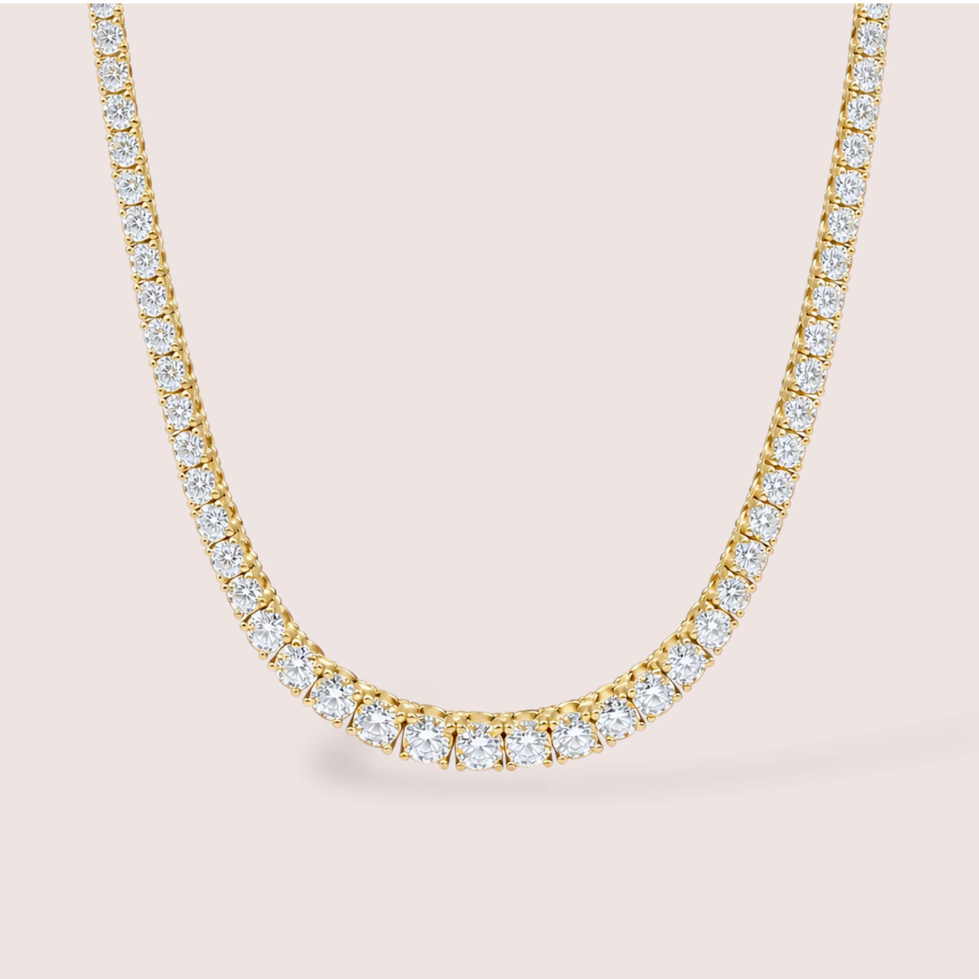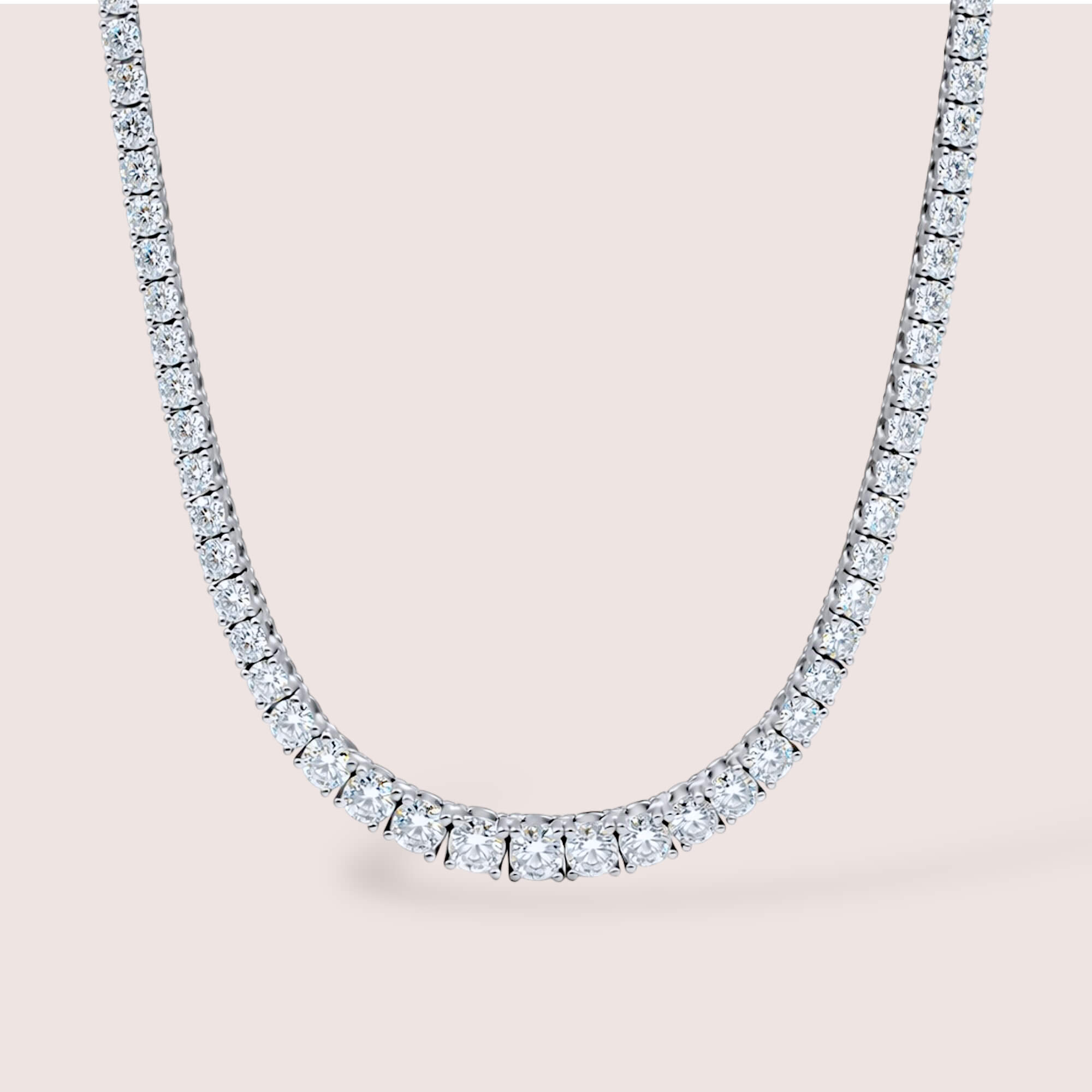 Naszyjnik tenisowy z moissanitami o średnicy 3mm w srebrze 925 zachwyca klasycznym, eleganckim designem i doskonałym blaskiem. Moissanity zostały misternie osadzone w szynie z precyzyjnie wypolerowanego srebra, co podkreśla ich intensywny blask i doskonały szlif. Dzięki rozszerzanemu wzorowi, naszyjnik pięknie układa się na szyi, oferując subtelny i luksusowy wygląd. Zapięcie zostało starannie zaprojektowane, zapewniając wygodę noszenia i bezpieczeństwo biżuterii. Idealny wybór dla osób ceniących ponadczasową elegancję i wyjątkowy styl.