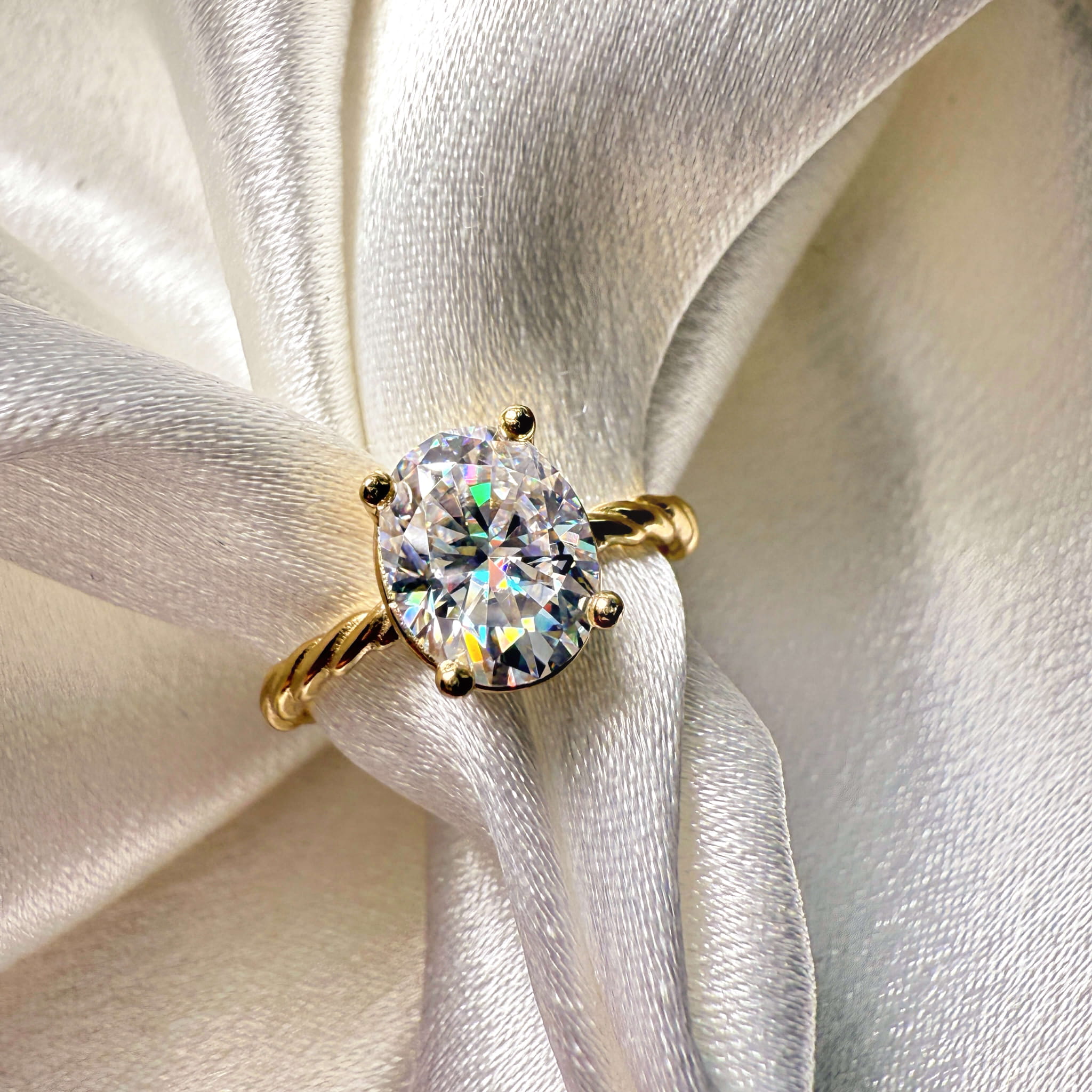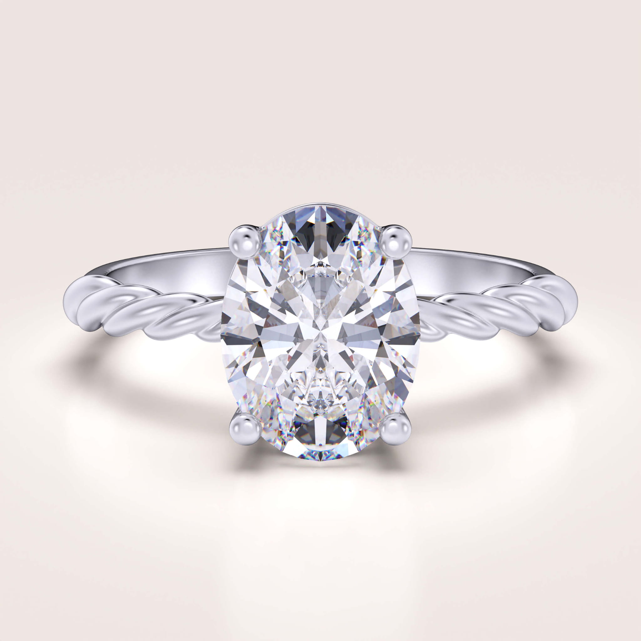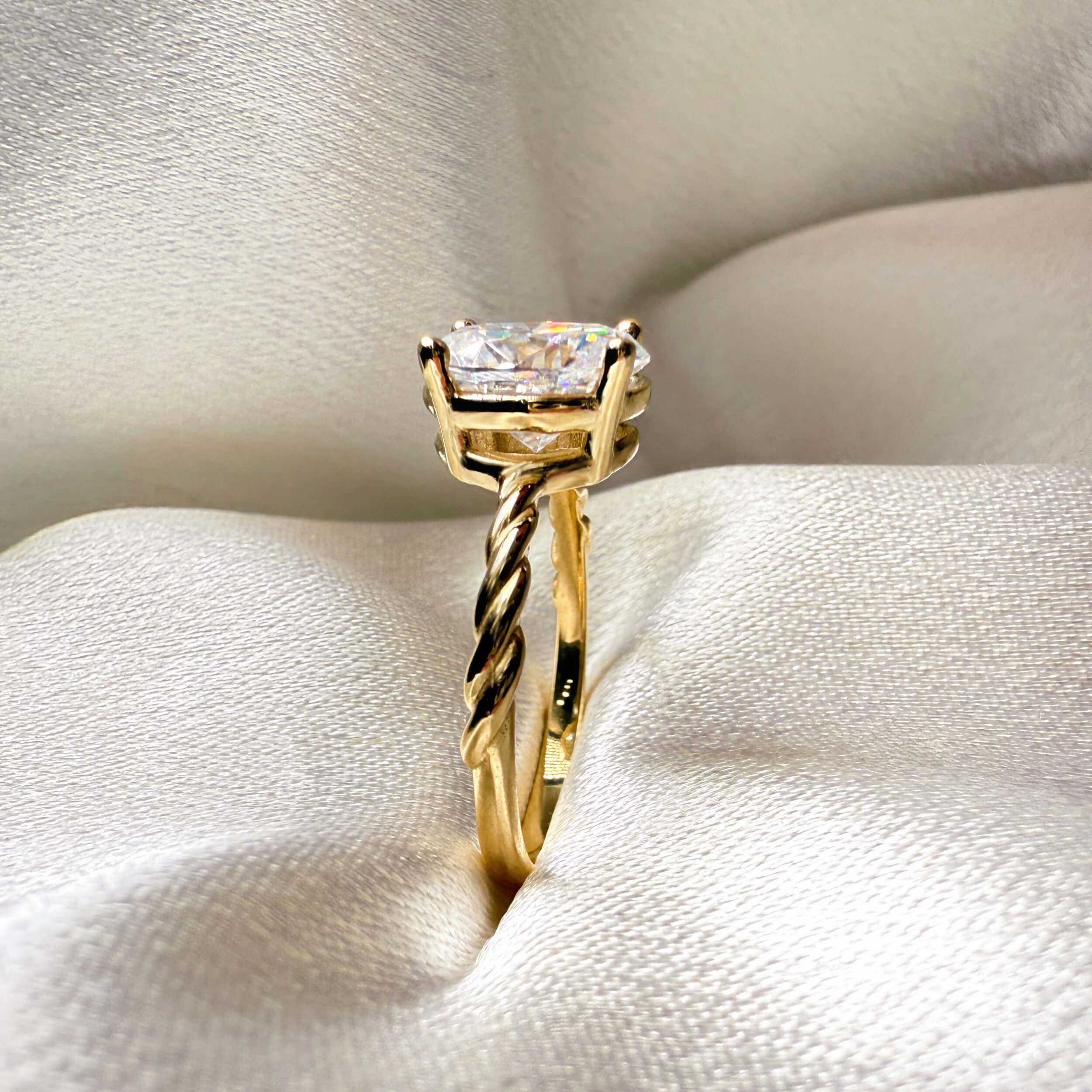 Pierścionek zaręczynowy w 24h z moissanitem 2ct szlif owalny – Twisted złoto 585 (skręcana szyna)
