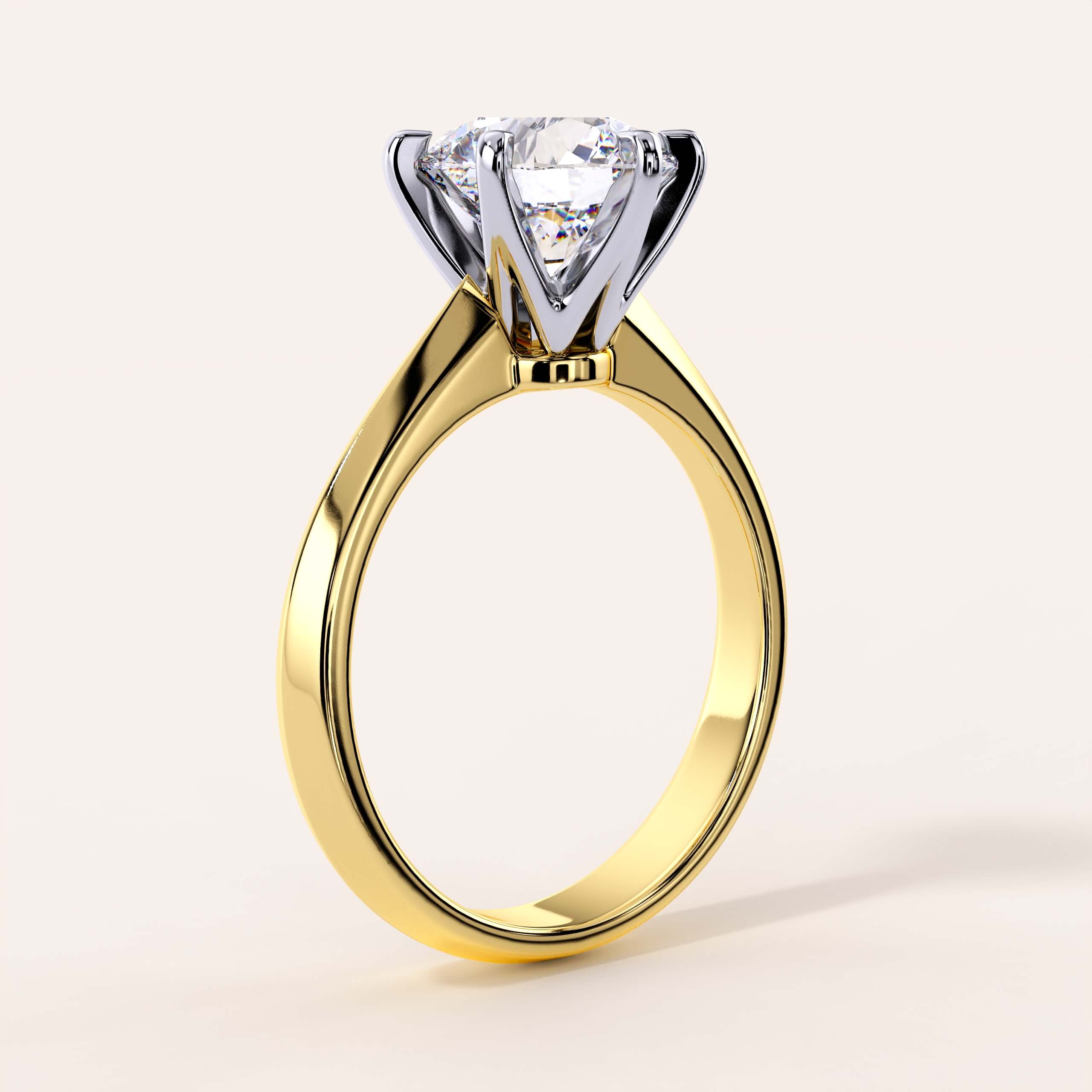 Pierścionek zaręczynowy Dream z diamentem laboratoryjnym o masie 1.5 ct w złocie dwukolorowym wyróżnia się formą, w której oprawa subtelnie unosi kamień, a smukła szyna zwęża się ku górze, tworząc lekką i elegancką linię. Dwukolorowe złoto 585 podkreśla blask diamentu, zapewniając ponadczasowy wygląd i komfort noszenia.