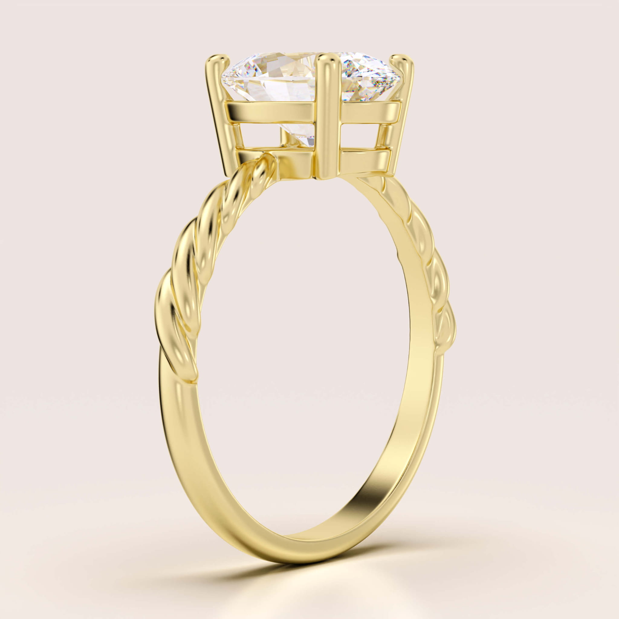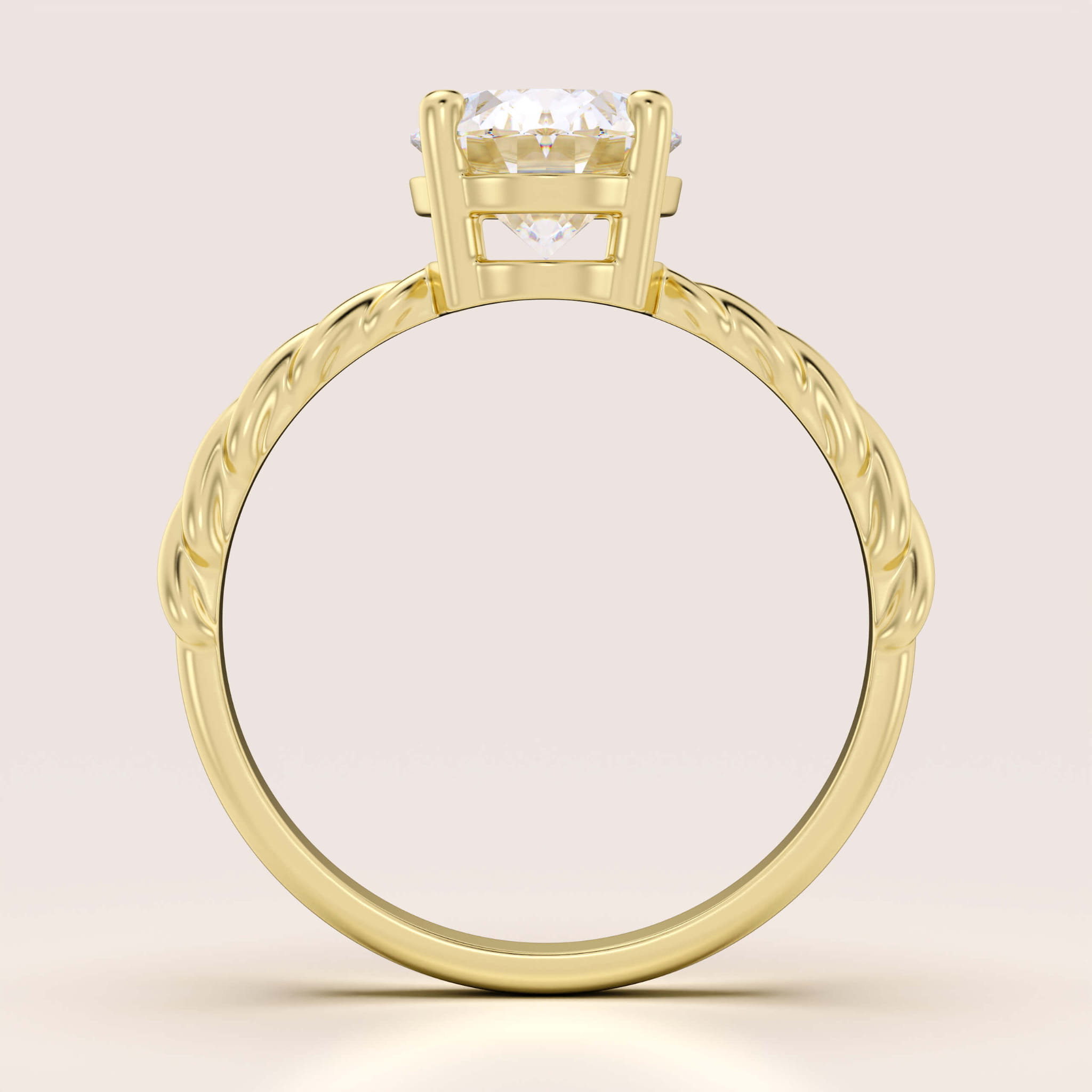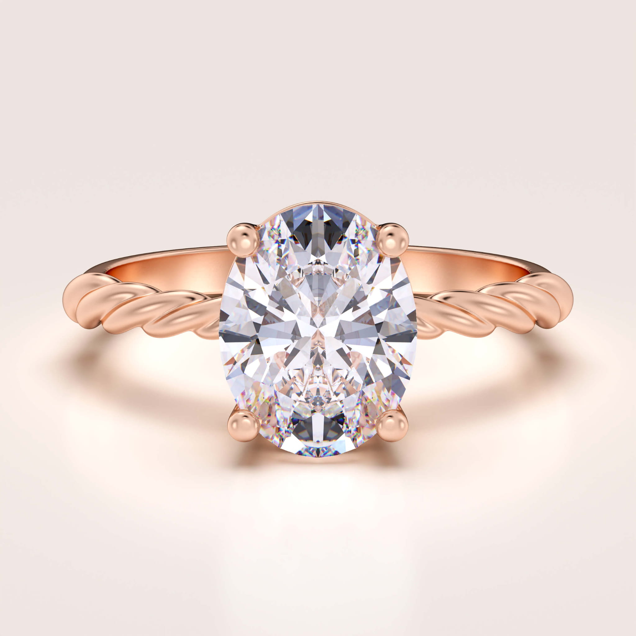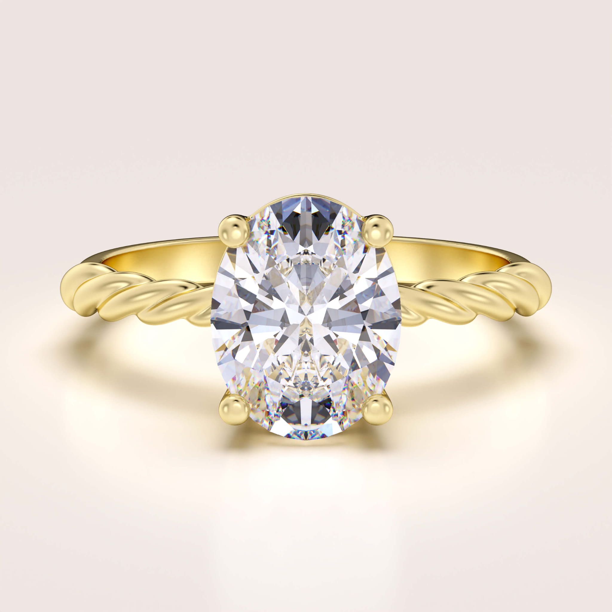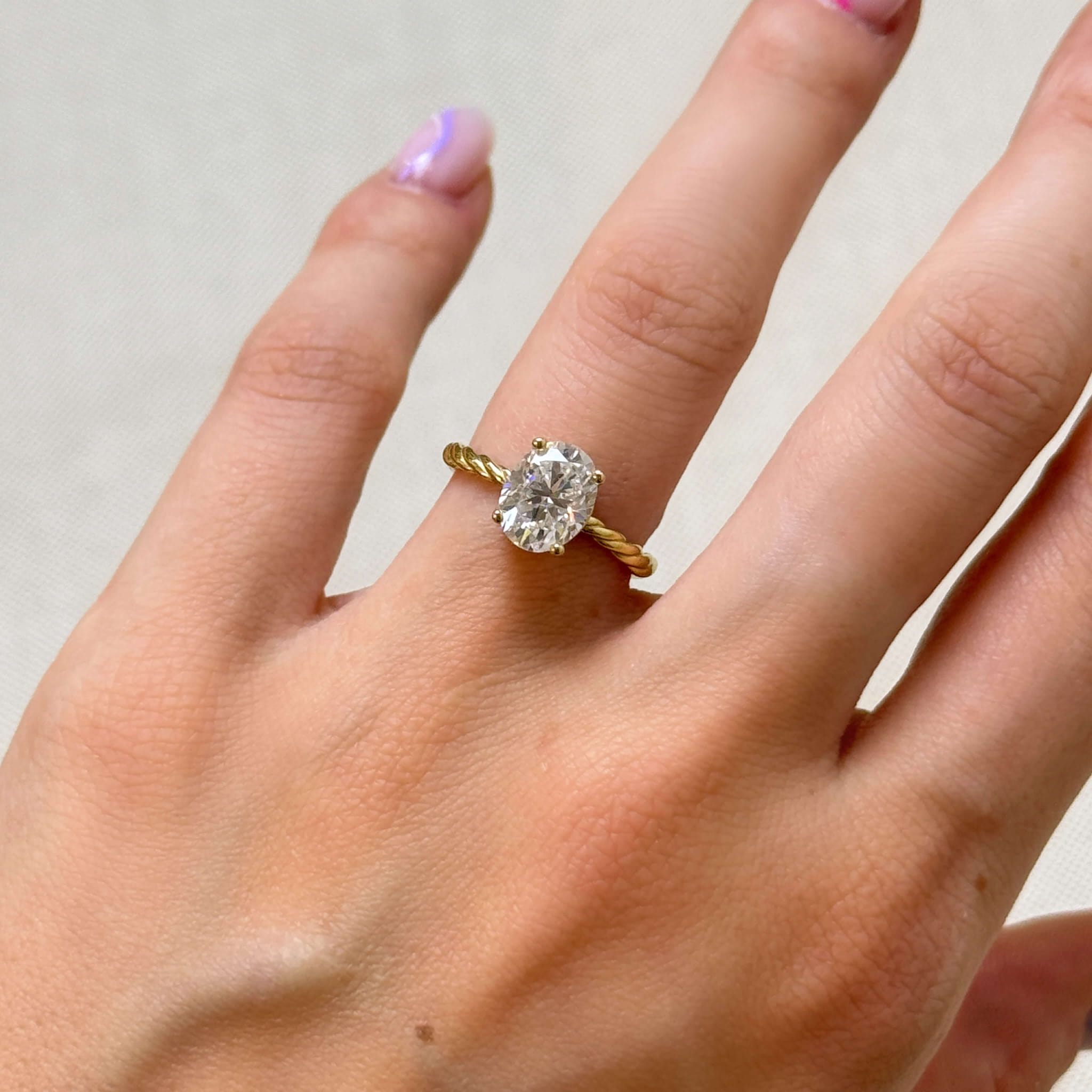 Pierścionek zaręczynowy z diamentem laboratoryjnym 2ct szlif owalny – Twisted złoto 585 (skręcana szyna)
